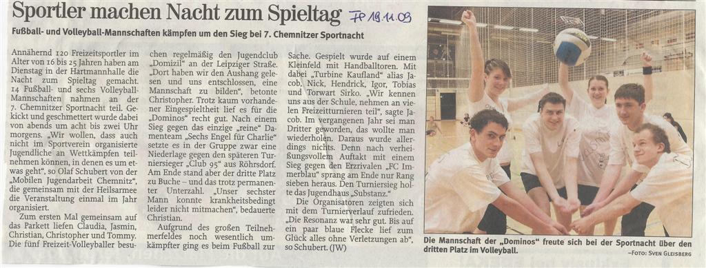 | Quelle: Chemnitzer Blick vom 03.11.1999 |